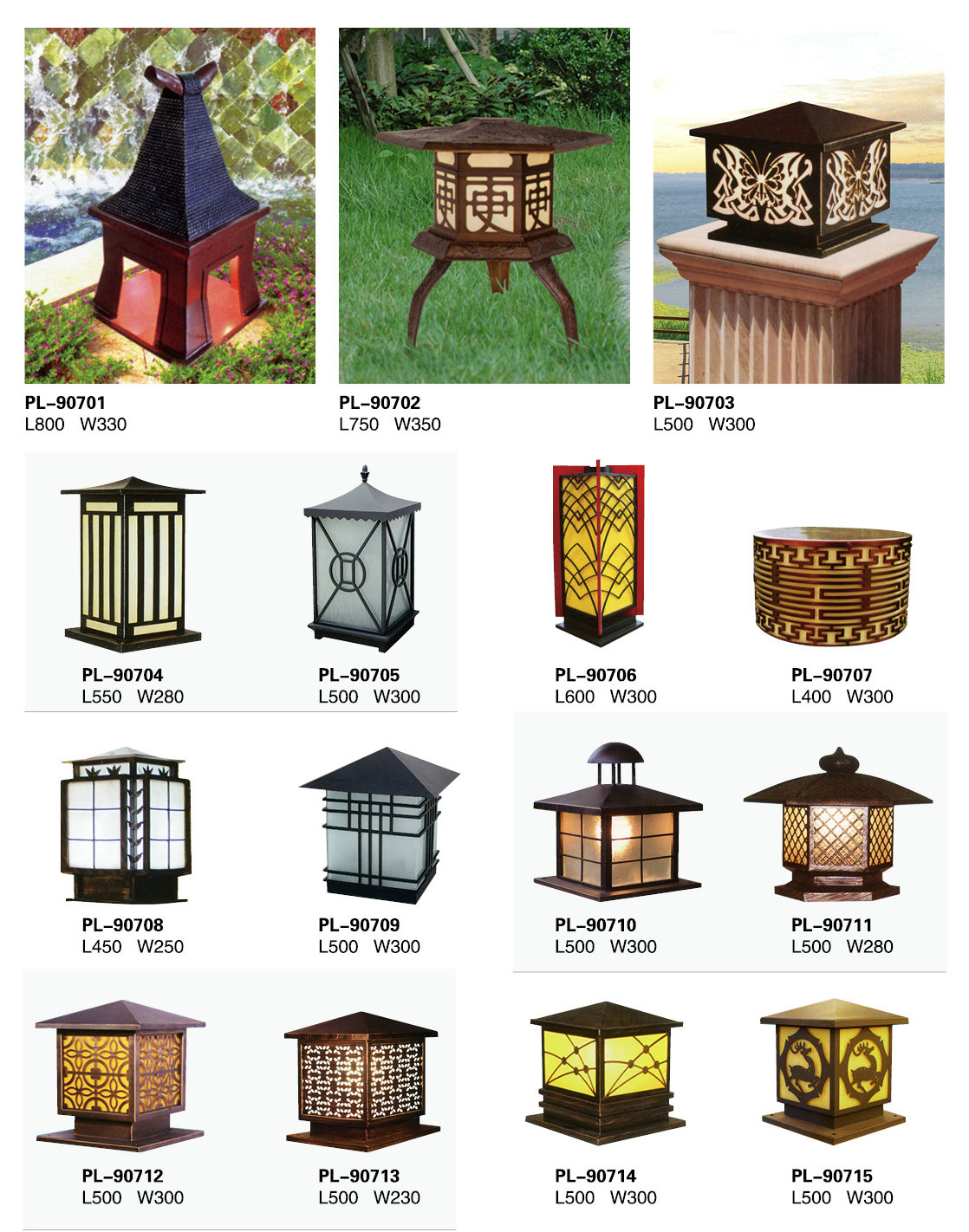 柱头灯系列:白天、柱头灯可以点缀城市风景、夜晚、柱头灯具既能提供必要的照明及生活便利,增加居民安全感,又能突显城市亮点、演绎亮丽风格,以至于沿用至今已经发展为成熟的产业链。运用于城市居民小区、旅游景区、公园、私家花园、庭院走廊等公共场所。