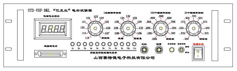 “巴克兰”甚高频电台试验器用于模仿电台在飞机上安装的连接方式结构,配合无线电综合测试仪检测电台的技术性能指标。